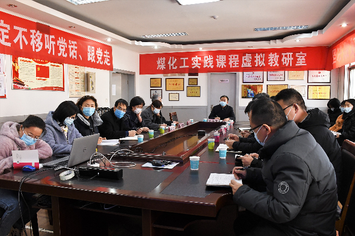 3月1日下午,我校煤化工实践课程虚拟教研室在科学楼13层会议室参加了教育部组织的线上虚拟教研室试点建设培训会。教研室本校全体成员,郑州大学、宁夏大学、中北大学、内蒙古工业大学等7所中西部成员高校教研室负责人,以及中化赛鼎工程公司、高等教育出版社有限公司和北京中教仪科技有限公司等4家企业的相关负责人等共60余人参加了本次培训会。校党委常委、副校长肖连团教授出席会议。